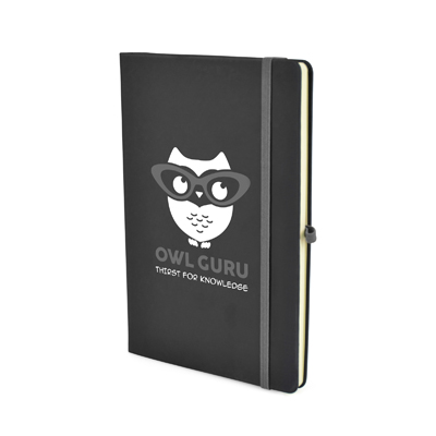| QS0765GY | 'A5 Black Mole Notebook' with GREY bookmark, pen loop, closure. | 20 |