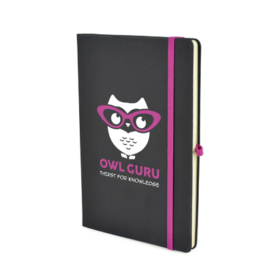 | QS0765PK | 'A5 Black Mole Notebook' with PINK bookmark, pen loop, closure. | 6325 |