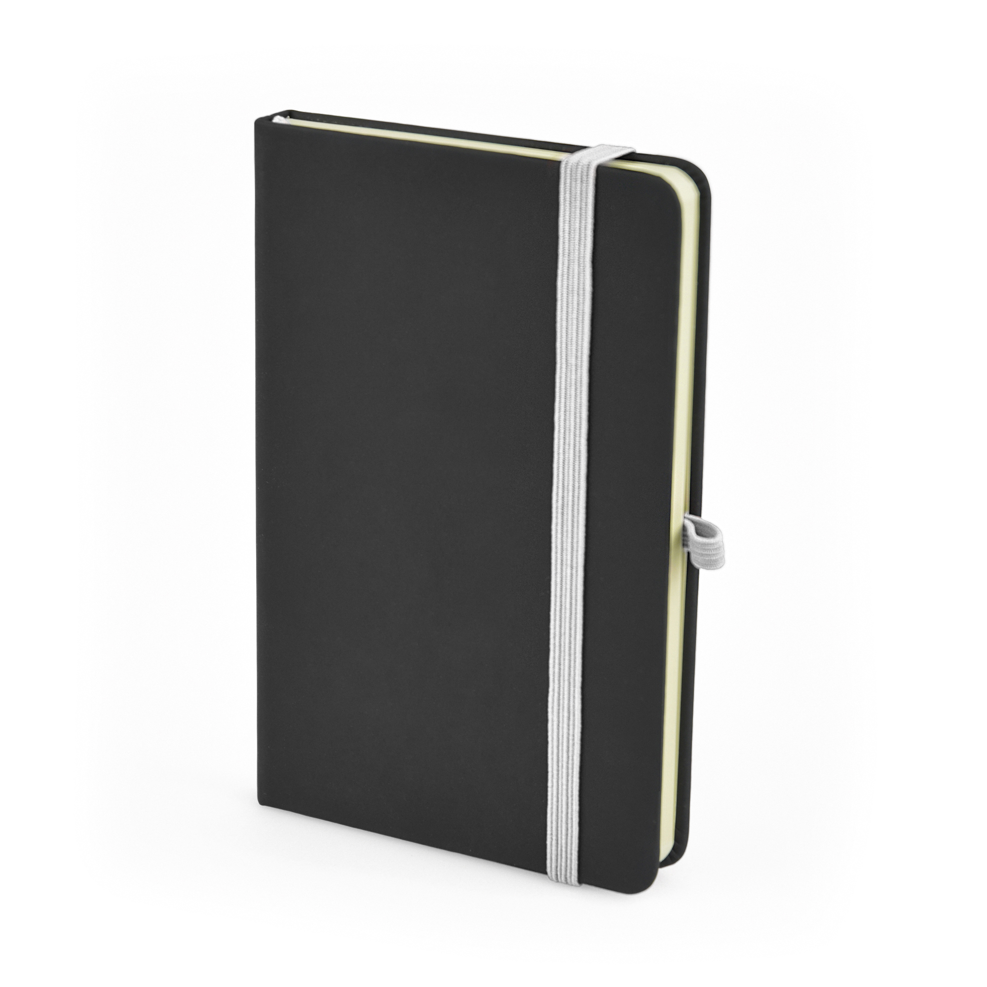 | QS0766WH | 'A6 Black Mole Notebook' with WHITE bookmark, pen loop, closure. | 578 |