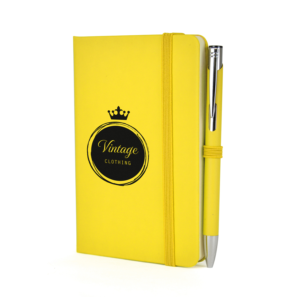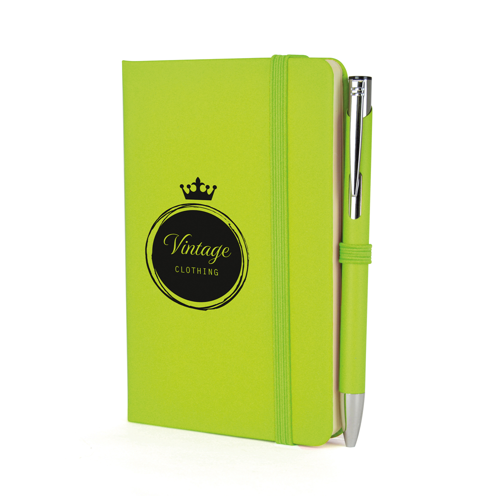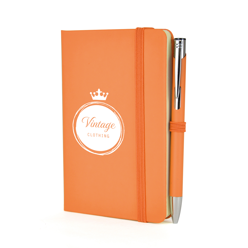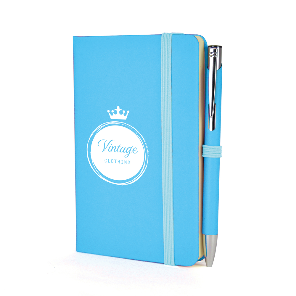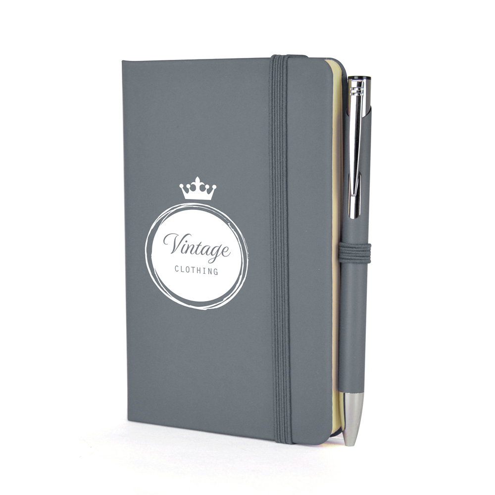 Price includes a one colour print to the note book and engraving to one position on the pen. Individual name available at additional cost. Set up, carriage and VAT are additional.