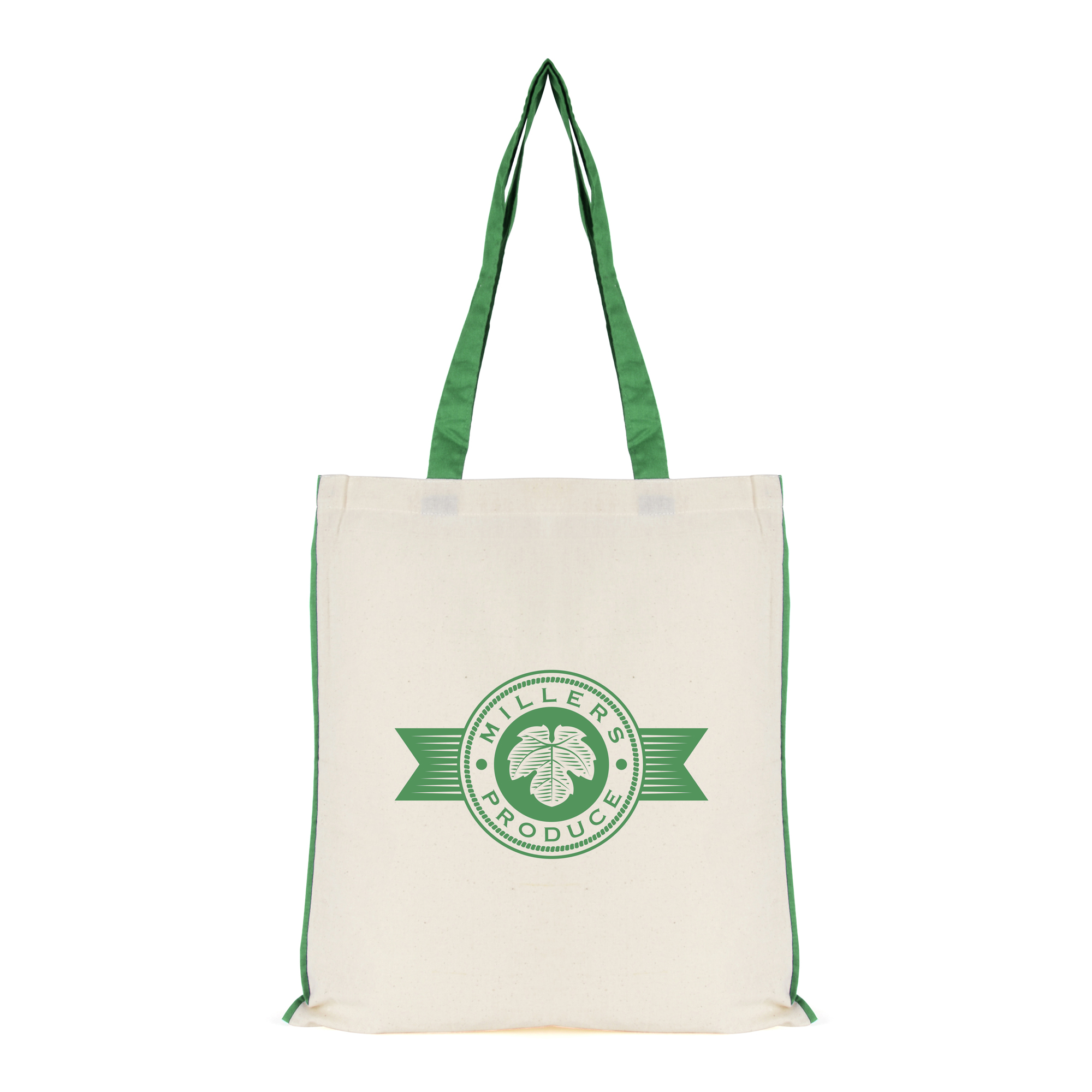 | QB0557GN | 5oz NATURAL cotton shopper bag with GREEN dyed piping trim + handles | 2623 |