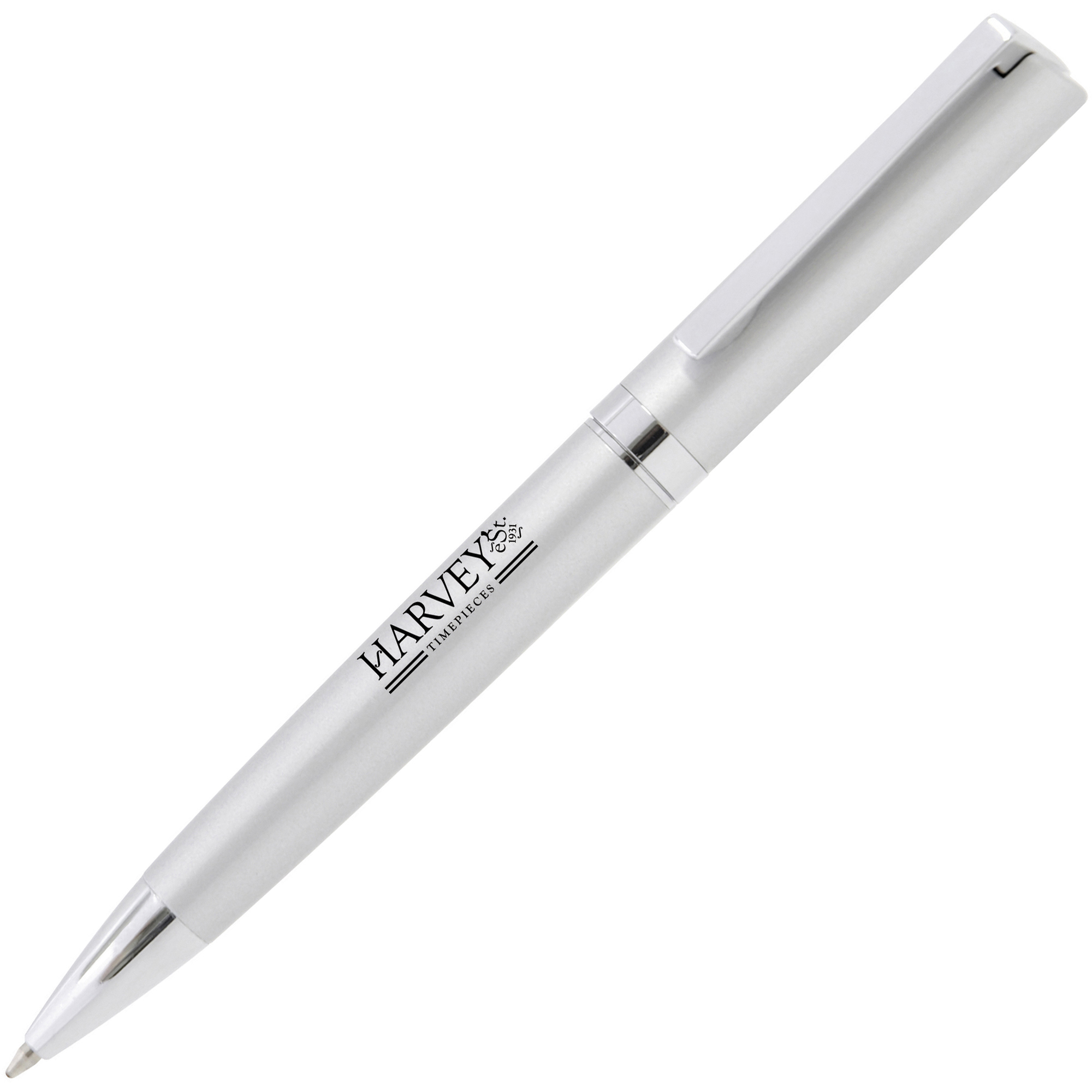 A substantial, twist action ball pen with clean lines and a hinged clip. Can be supplied on its own or as a set with matching roller.