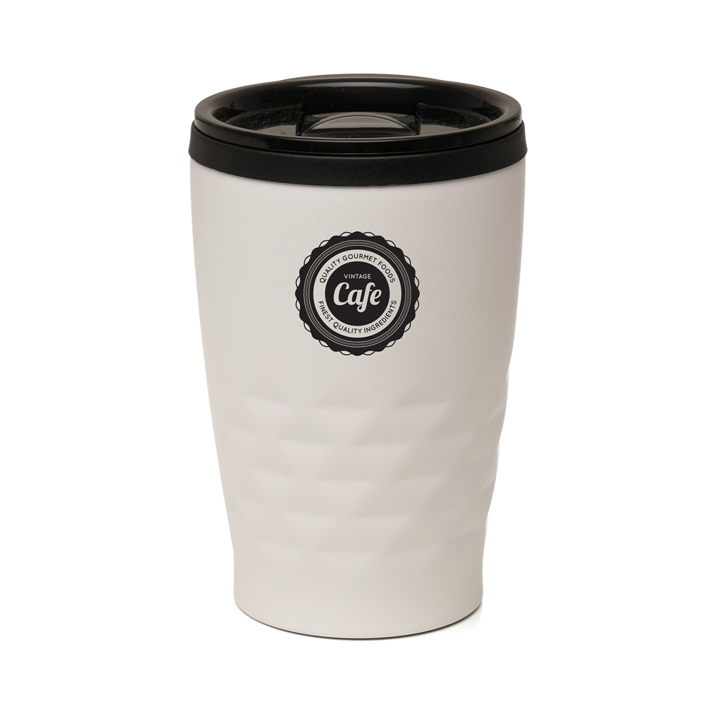 Promote your branding with the double walled stainless steel Ashford Geo 360ml Tumbler made from recycled PP plastic inner, sliding sipper and secure push on black lid. Designed for everyday convenience, it features a stylish indented body that not only enhances its modern look but also provides a comfortable, secure grip. The stainless steel interior helps maintain your drinkÂ’s temperature for longer whether hot or cold. Ideal for trade shows, corporate giveaways, and events, this tumbler provides a prominent space for your company logo, ensuring your brand leaves a lasting impression. Order yours today! BPA and PVC free.