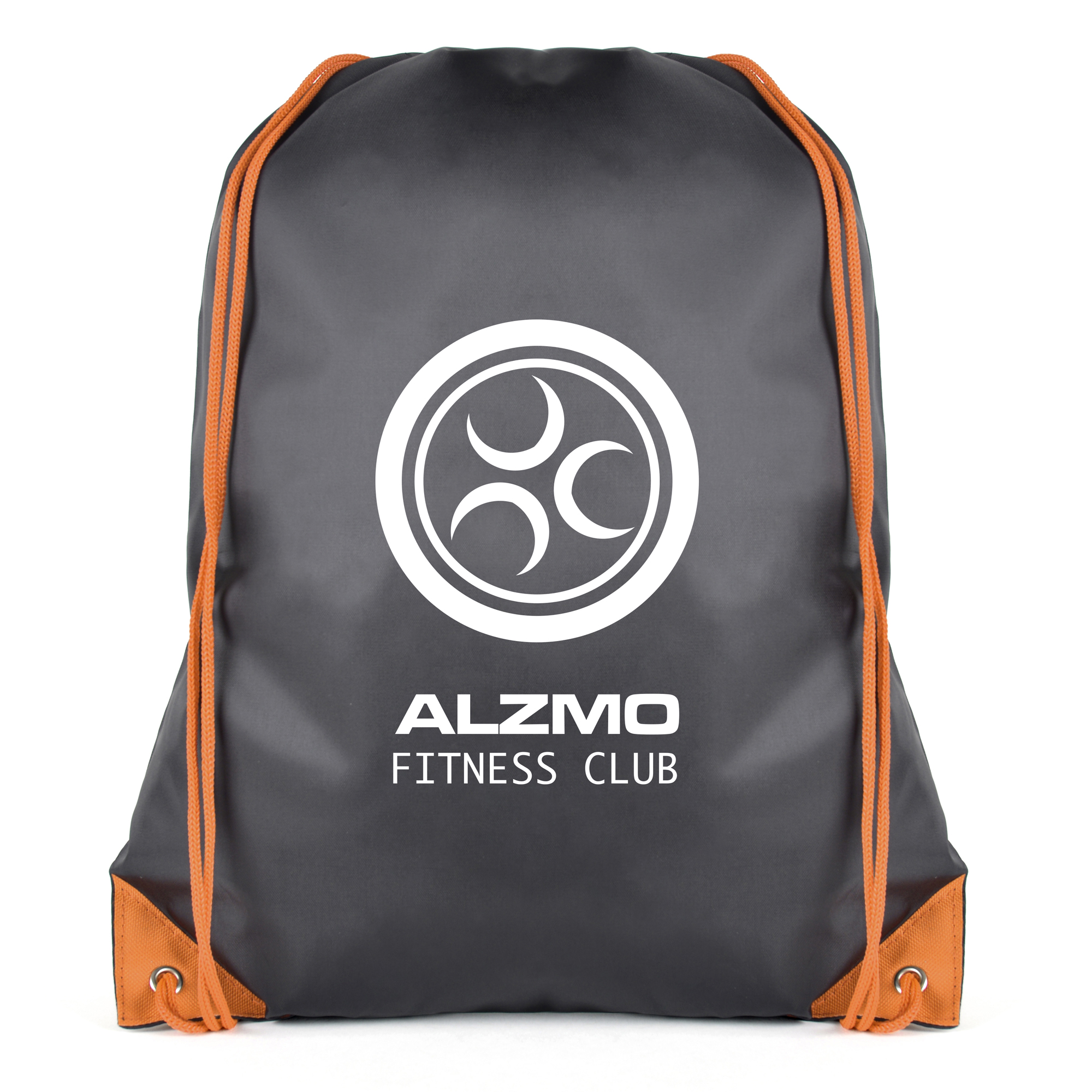 | QB0610AM | 'Pegasus' BLACK 210D Polyester drawstring rucksack, ORANGE string + corners | 1343 |