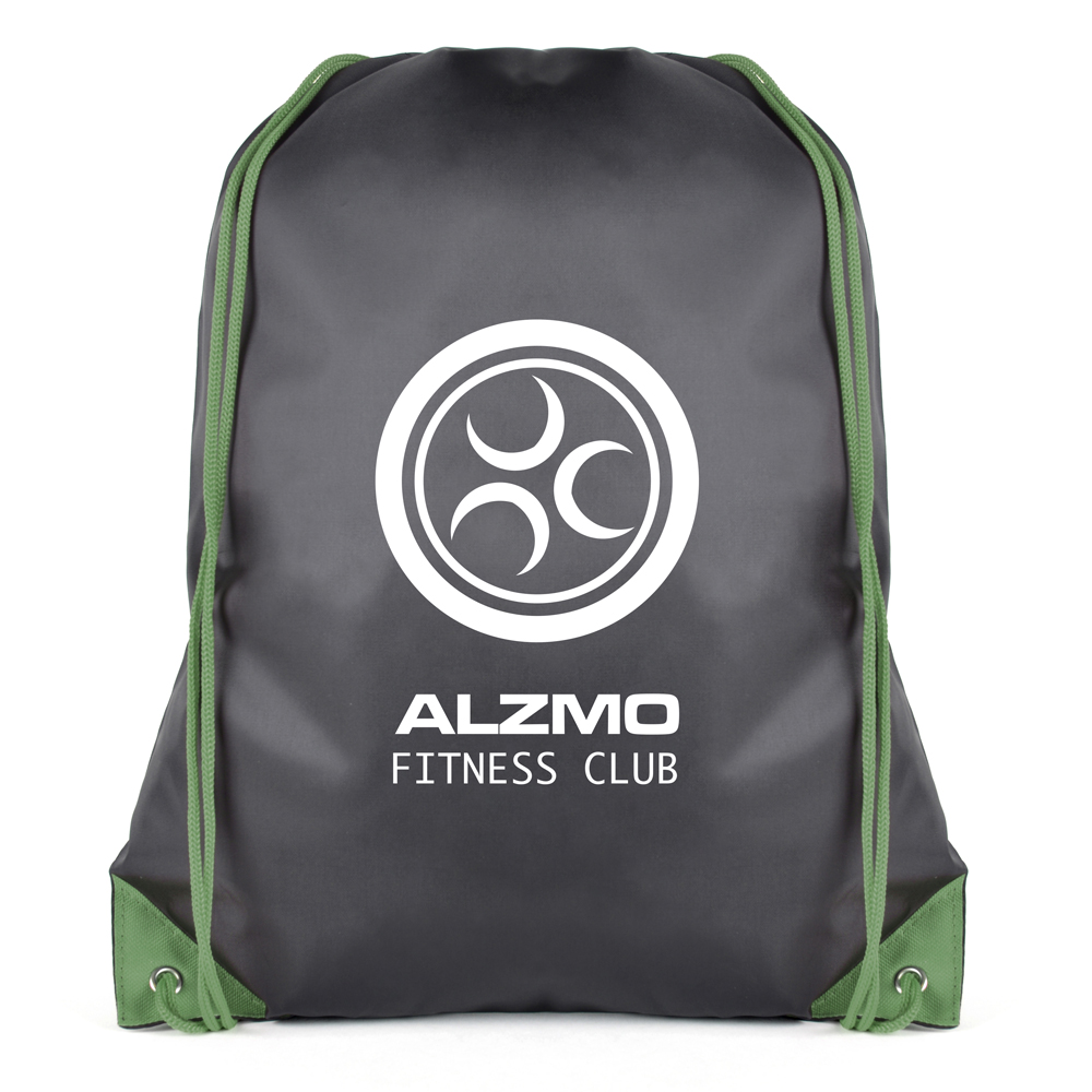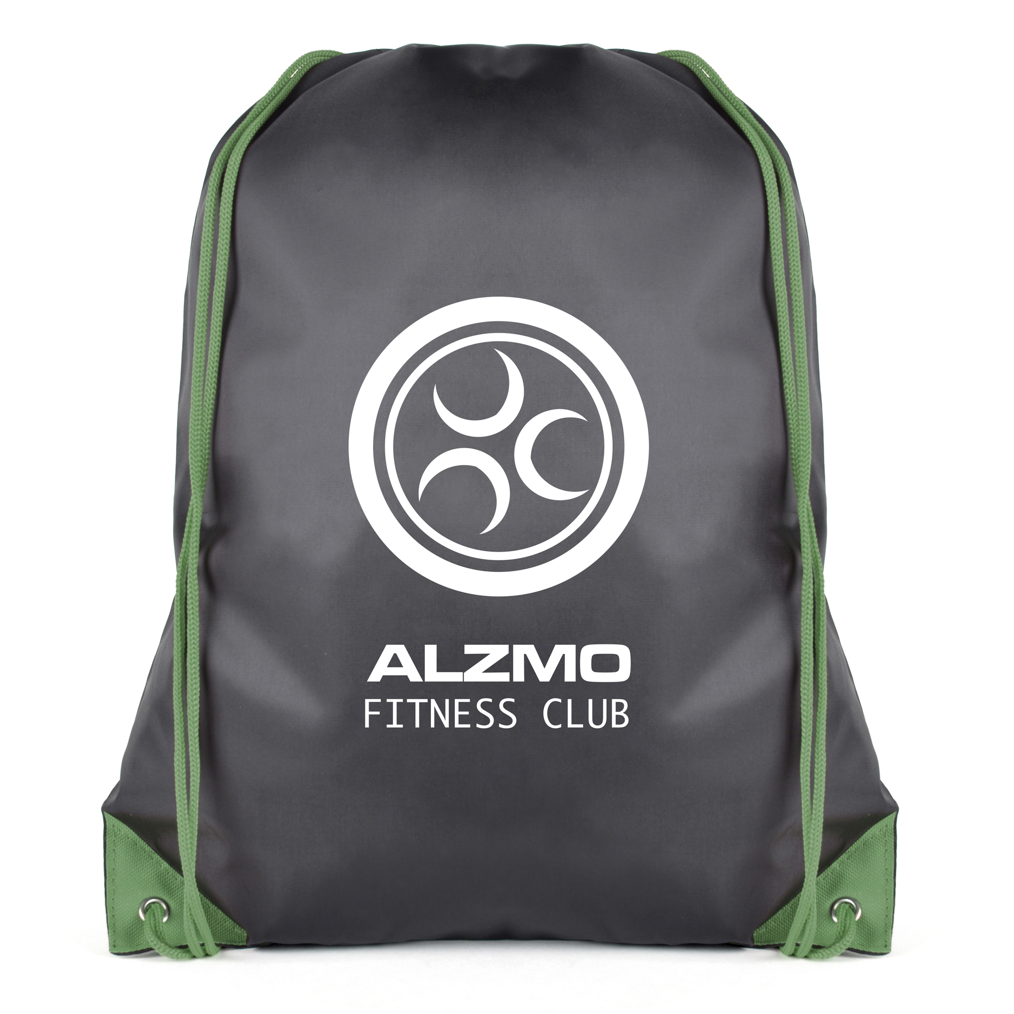 | QB0610GN | 'Pegasus' BLACK 210D Polyester drawstring rucksack, GREEN string + corners | 3783 |