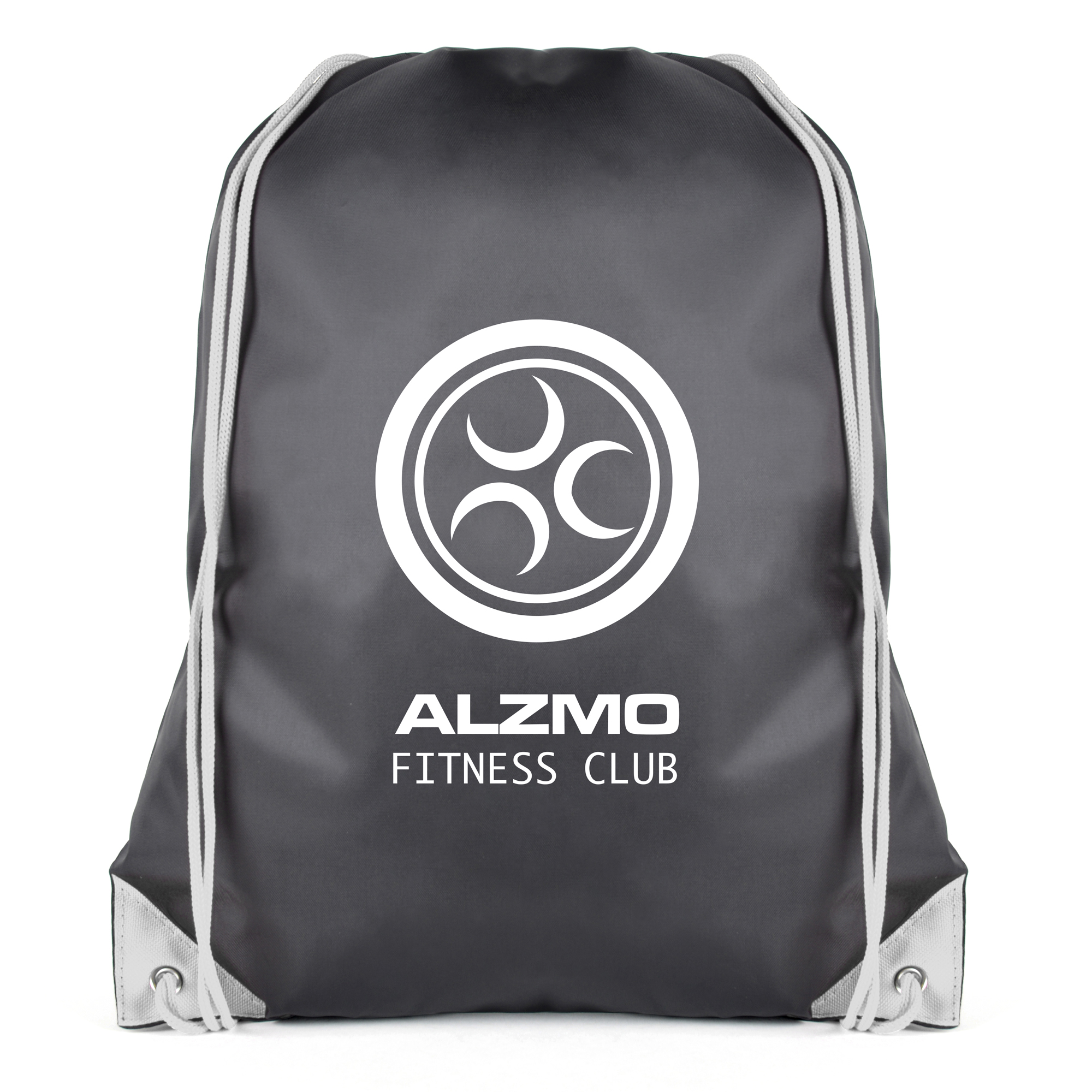 | QB0610GR | 'Pegasus' BLACK 210D Polyester drawstring rucksack, GREY string + corners | 3054 |