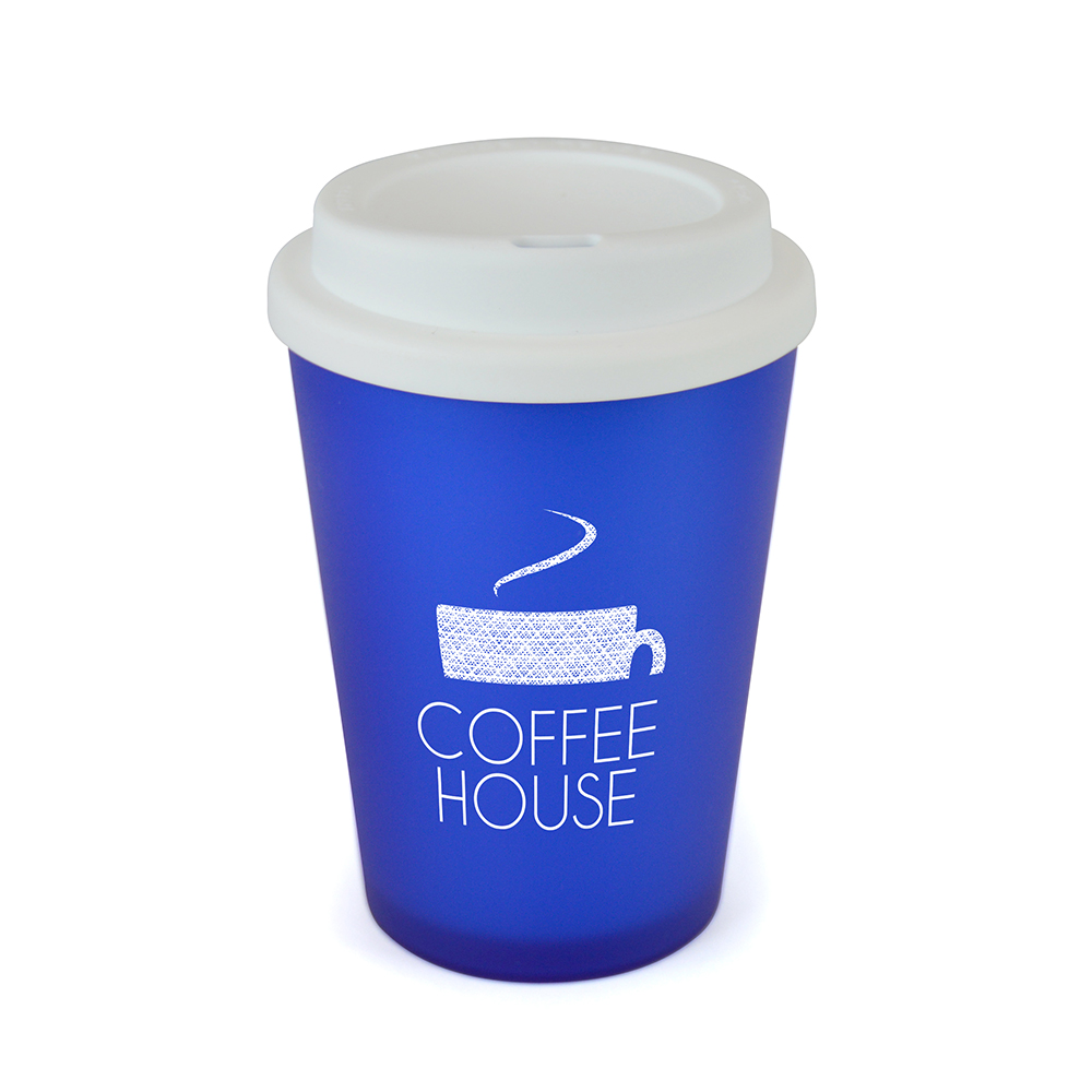 | MG3017BL | 'Haddon Colour' Frosted TRANS BLUE 350ml double wall tumbler with WHITE lid | 1999 |
