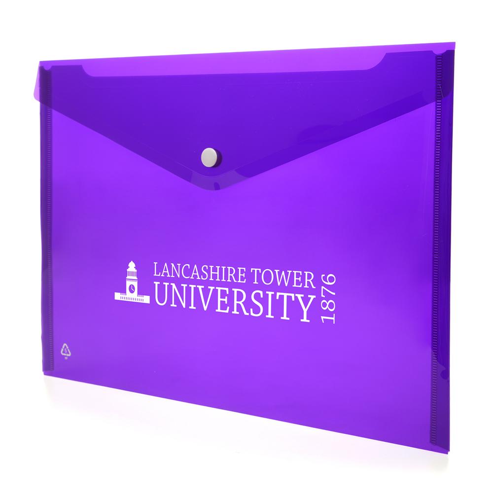 | QC0093PL | Translucent PURPLE PP plastic document wallet with WHITE Stud closure | 4328 |