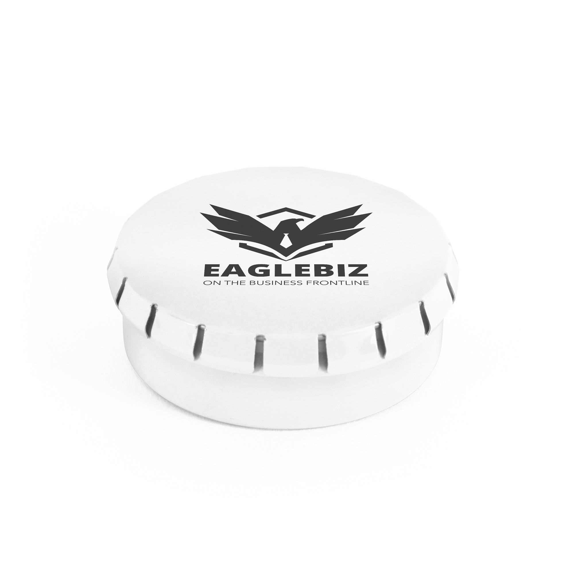 | XU0015WH | 'Large Click Clack' WHITE LARGE CIRCULAR metal mint tin. | 967 |