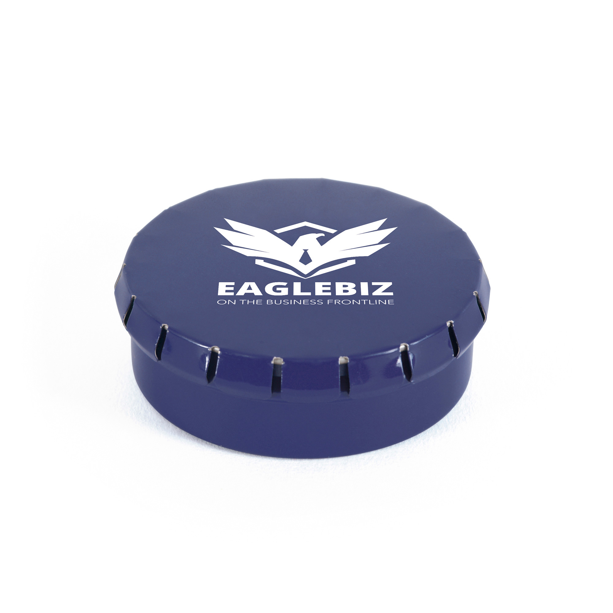 | XU0015NBL | 'Large Click Clack' NAVY BLUE LARGE CIRCULAR metal mint tin. | 1025 |