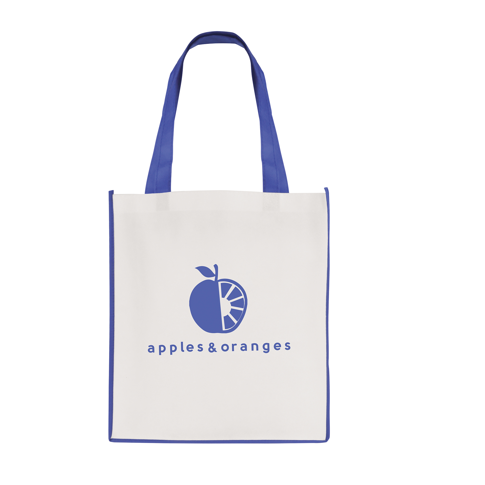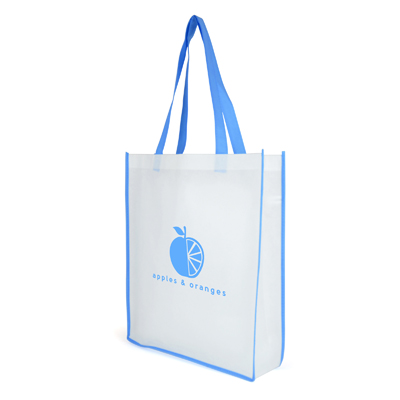 QB3006BL WHITE non woven PP shopper with BLUE coloured piping trim, and handles 5224
