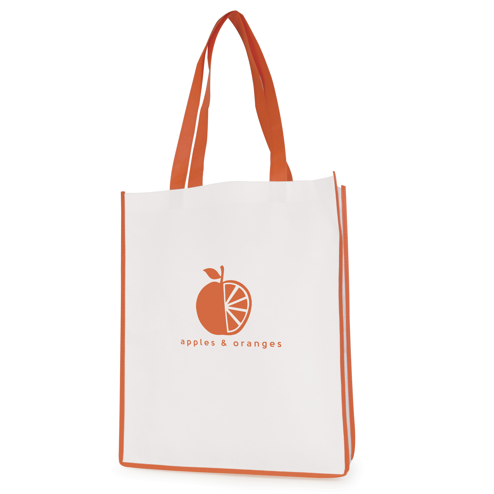 QB3006AM WHITE non woven PP shopper with AMBER coloured piping trim, and handles 386
