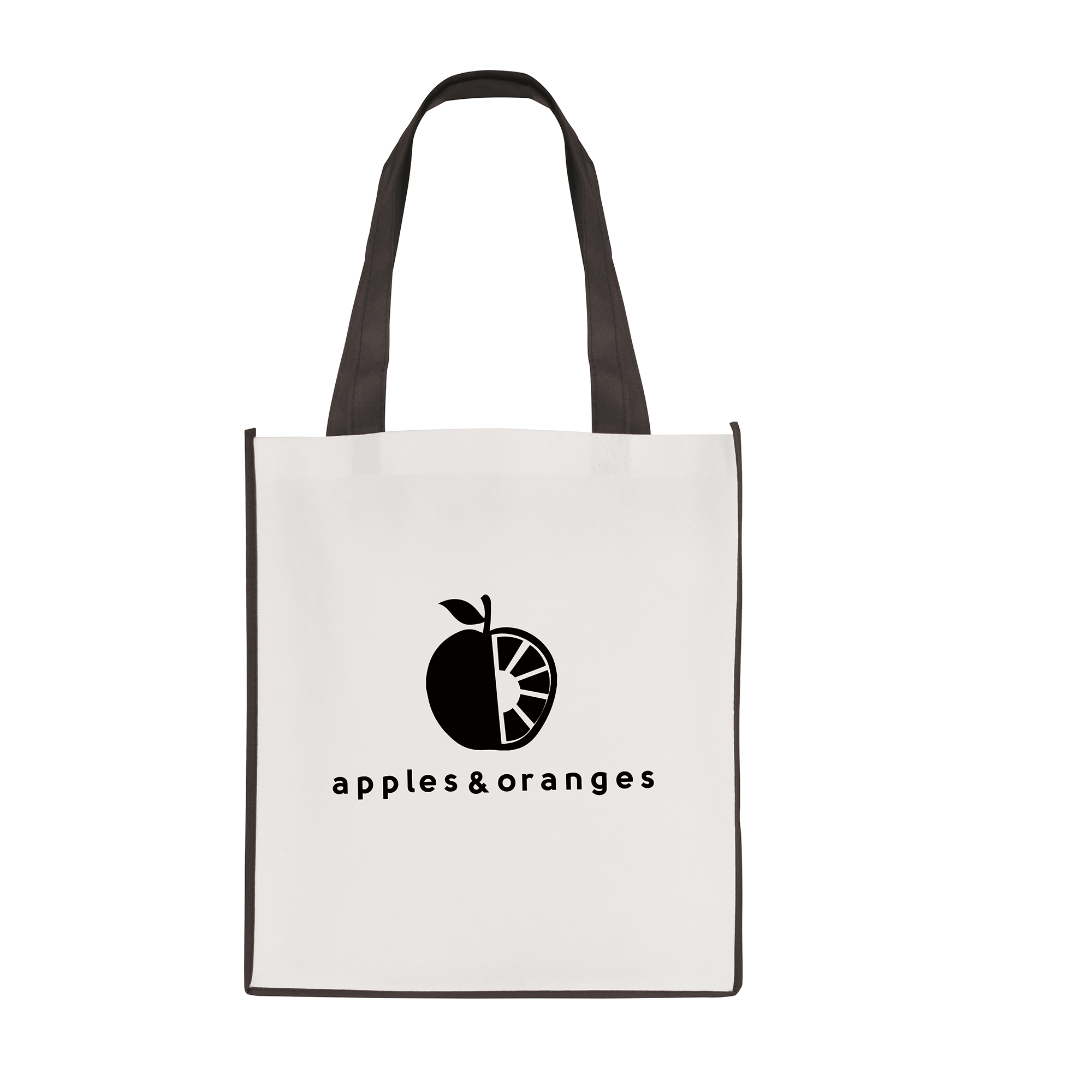 QB3006BK WHITE non woven PP shopper with BLACK coloured piping trim, and handles 2142