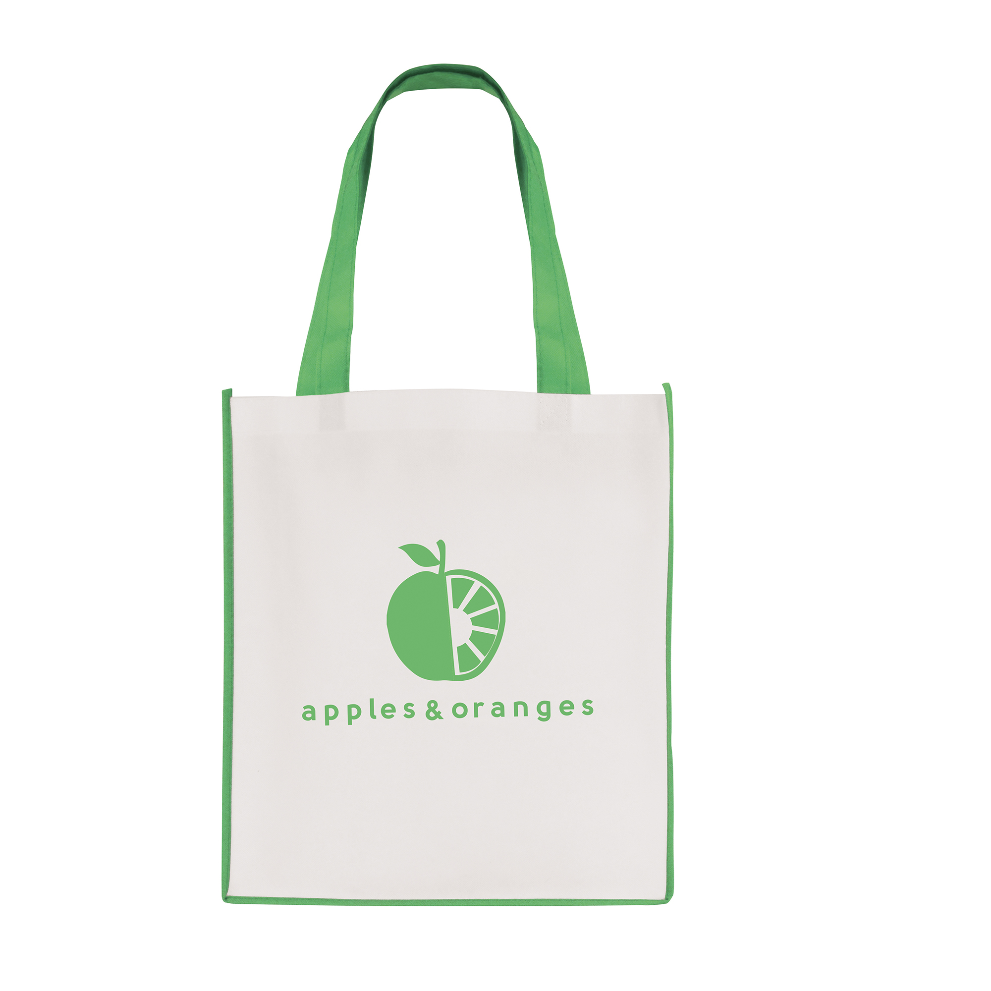 QB3006GN WHITE non woven PP shopper with GREEN coloured piping trim, and handles 1473