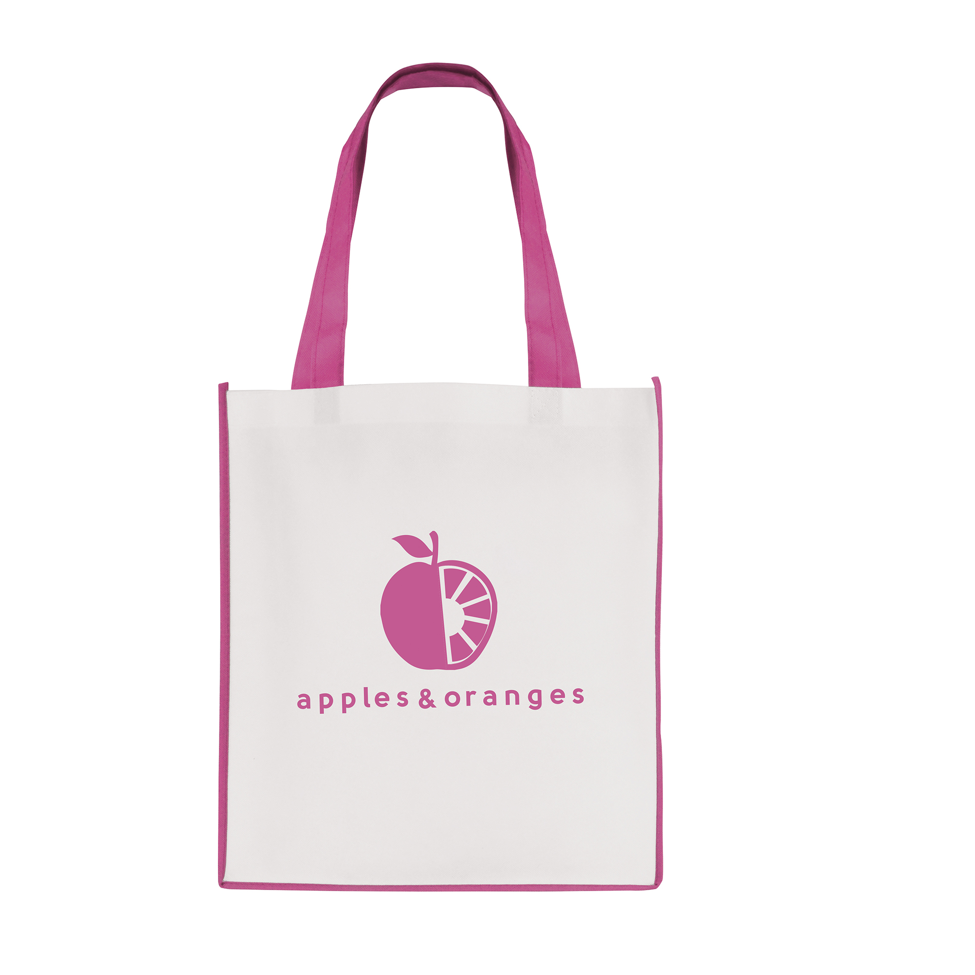 QB3006PK WHITE non woven PP shopper with PINK coloured piping trim, and handles 1964