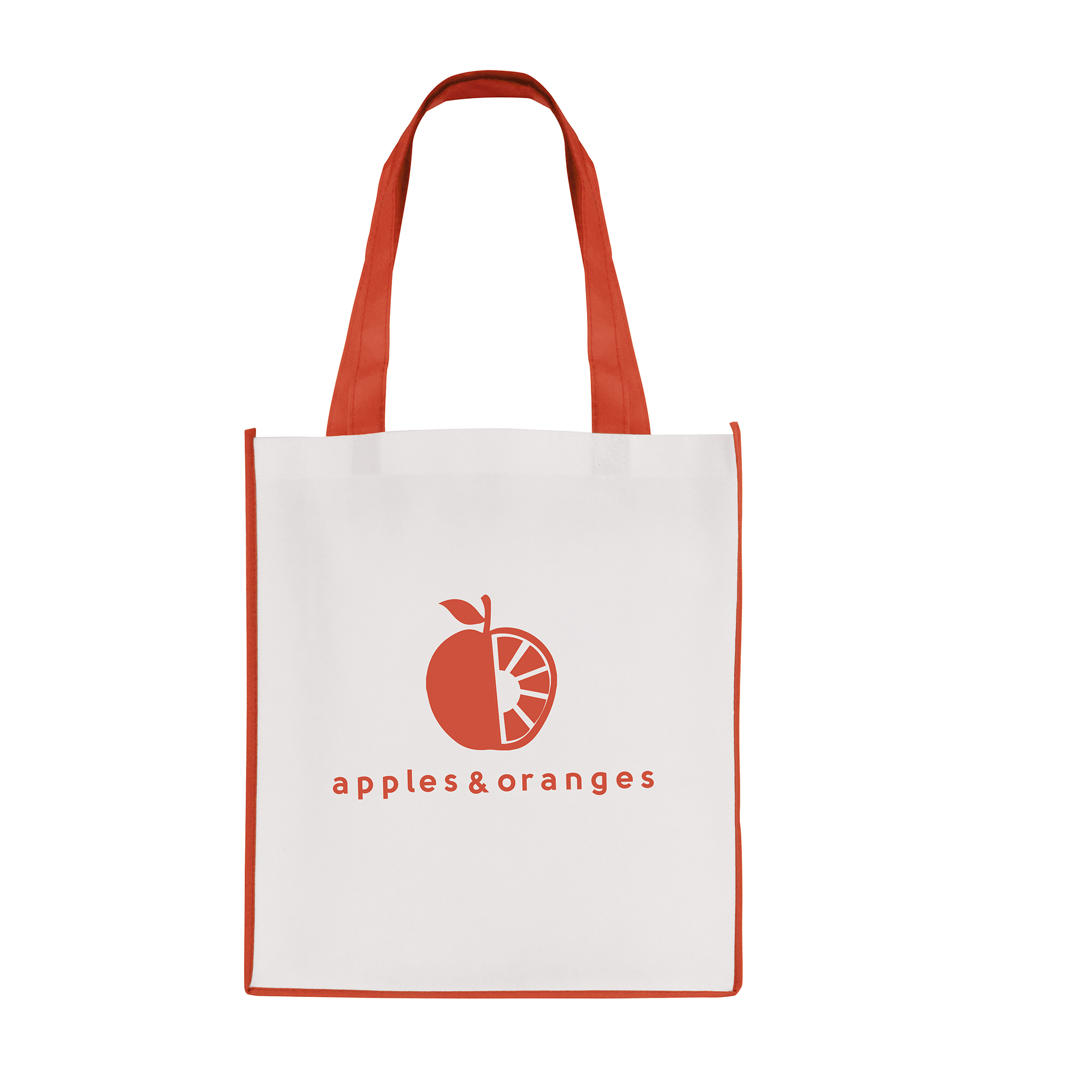 QB3006RD WHITE non woven PP shopper with RED coloured piping trim, and handles 2737