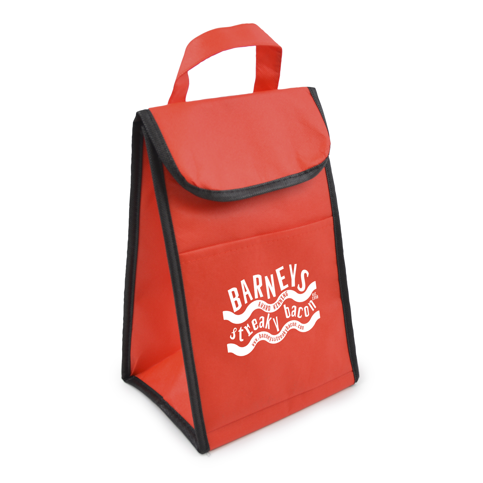 | QB0012RD | 'Lawson' RED 186c 80g Non Woven Cooler Lunch Bag with BLACK trim | 3780 |