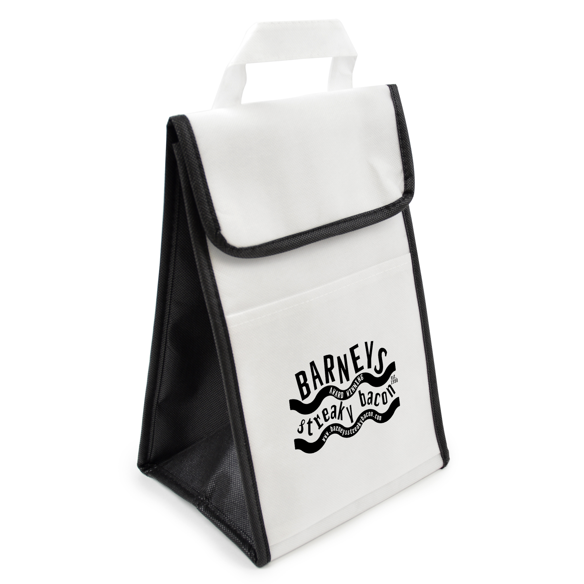 | QB0012WH | 'Lawson' WHITE 80g Non Woven Cooler Lunch Bag with BLACK trim | 1294 |