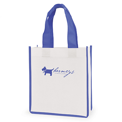 Recyclable 80gsm non woven PP mini shopper with gusset, coloured handles and trimmings. Clearance item so once the stock is gone it's gone!