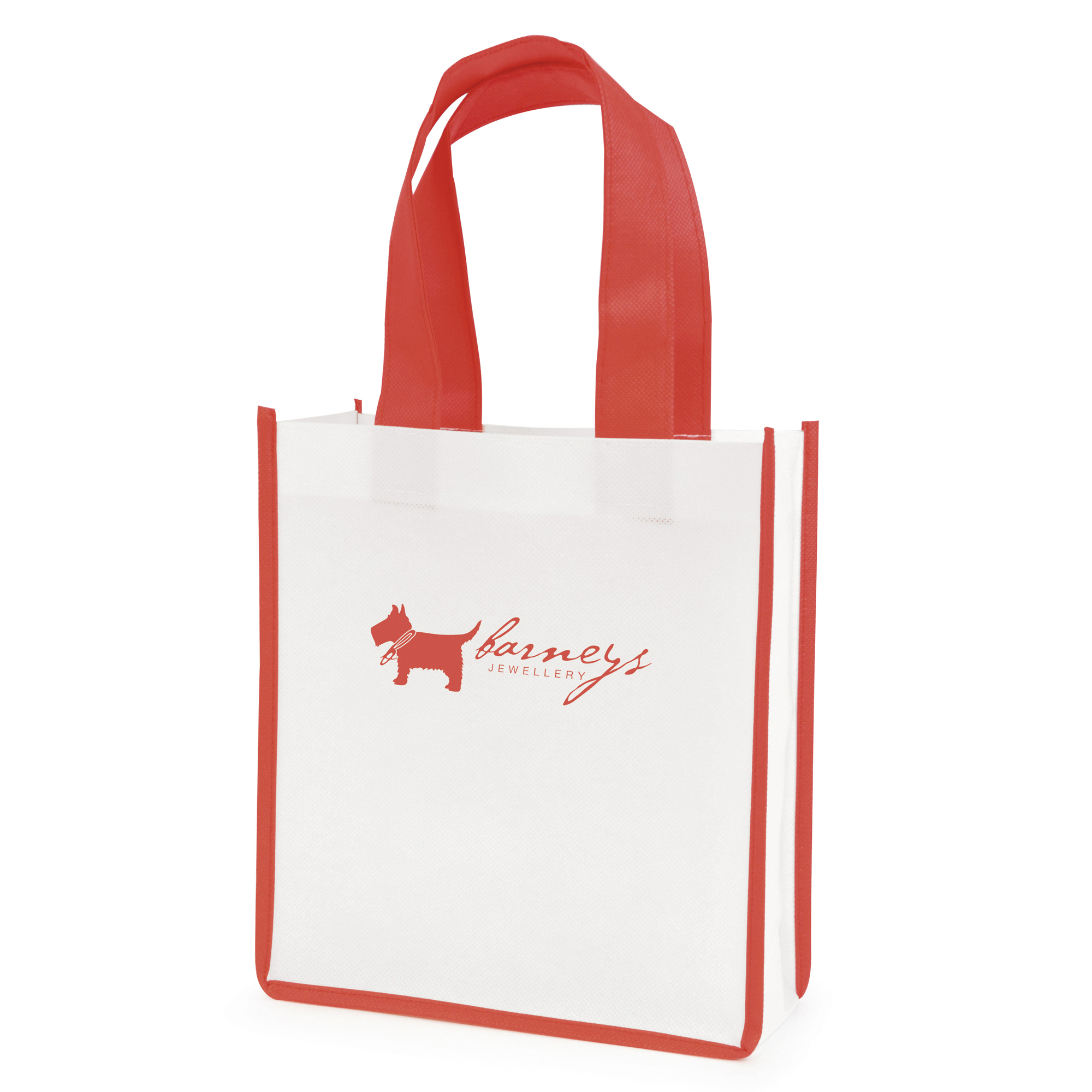 QB3007RD Mini WHITE non woven PP shopped with RED coloured piping trim + handles 396