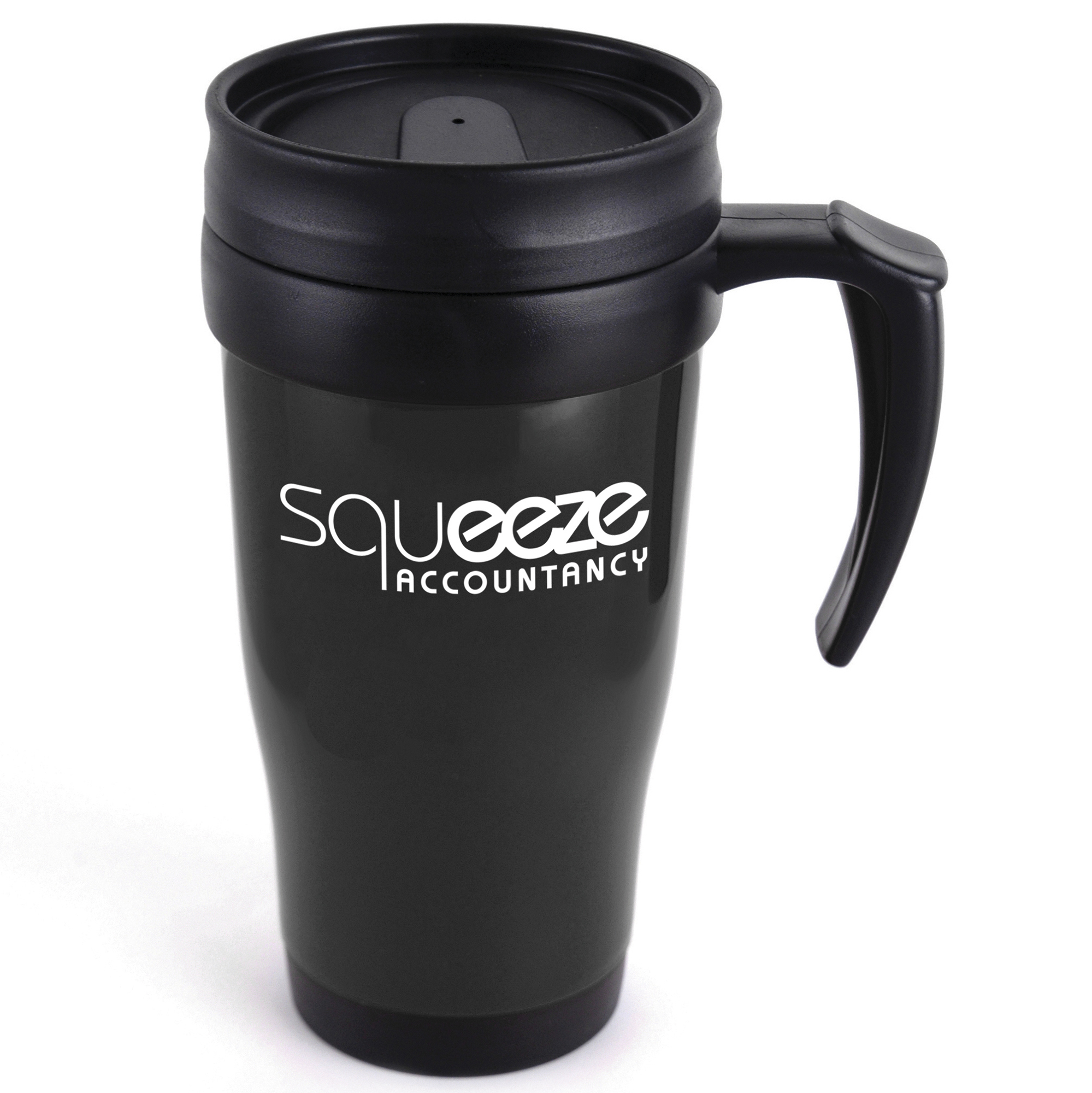 | MG0192BK | 'Polo Plus' 400ml Plastic Solid Coloured Travel Mug in BLACK | 11894 |