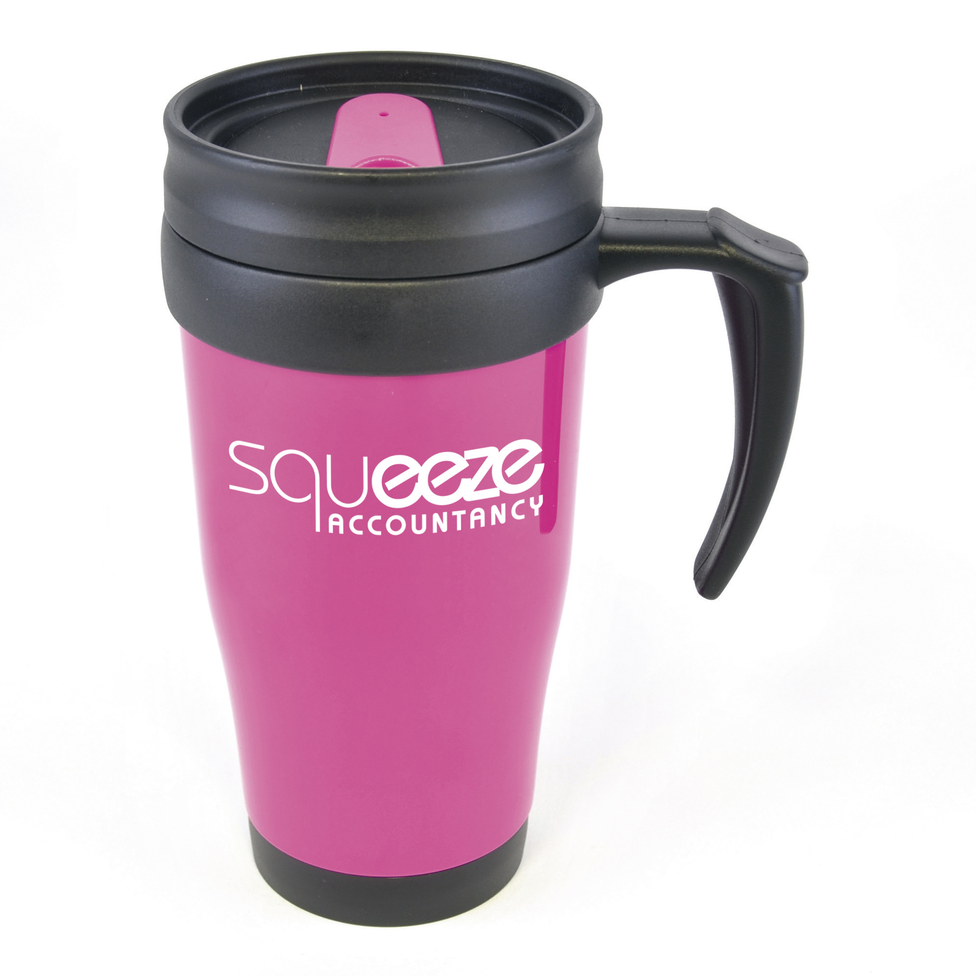| MG0192PK | 'Polo Plus' 400 ml Plastic Solid Coloured Travel Mug in PINK | 10396 |