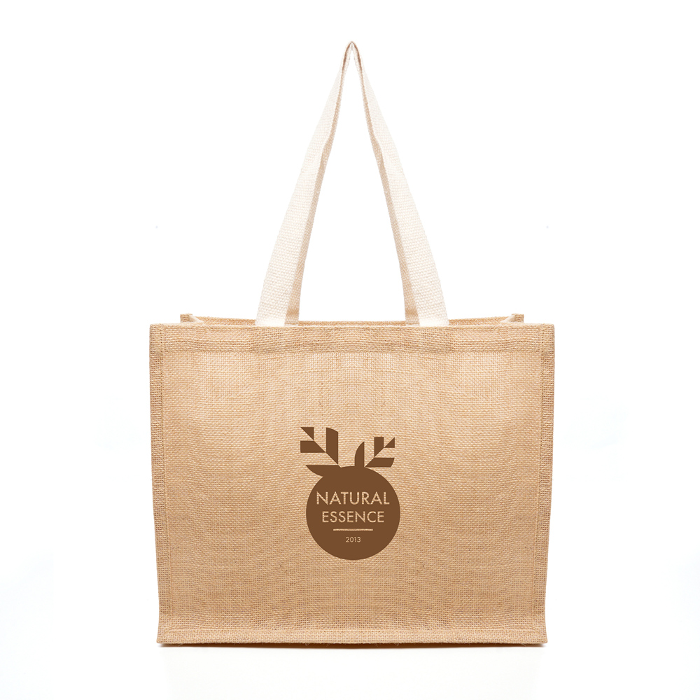 | QB0578NT | NATURAL Laminated Natural jute bag, with cotton webbing flat handle | 3931 |