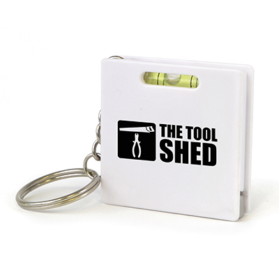 1m tape measure keyring with spirit level.