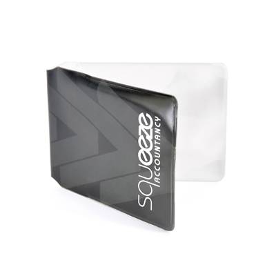 PVC travel card wallet with space to hold tickets. Available with white inner, transparent pockets with full colour design on the exterior.