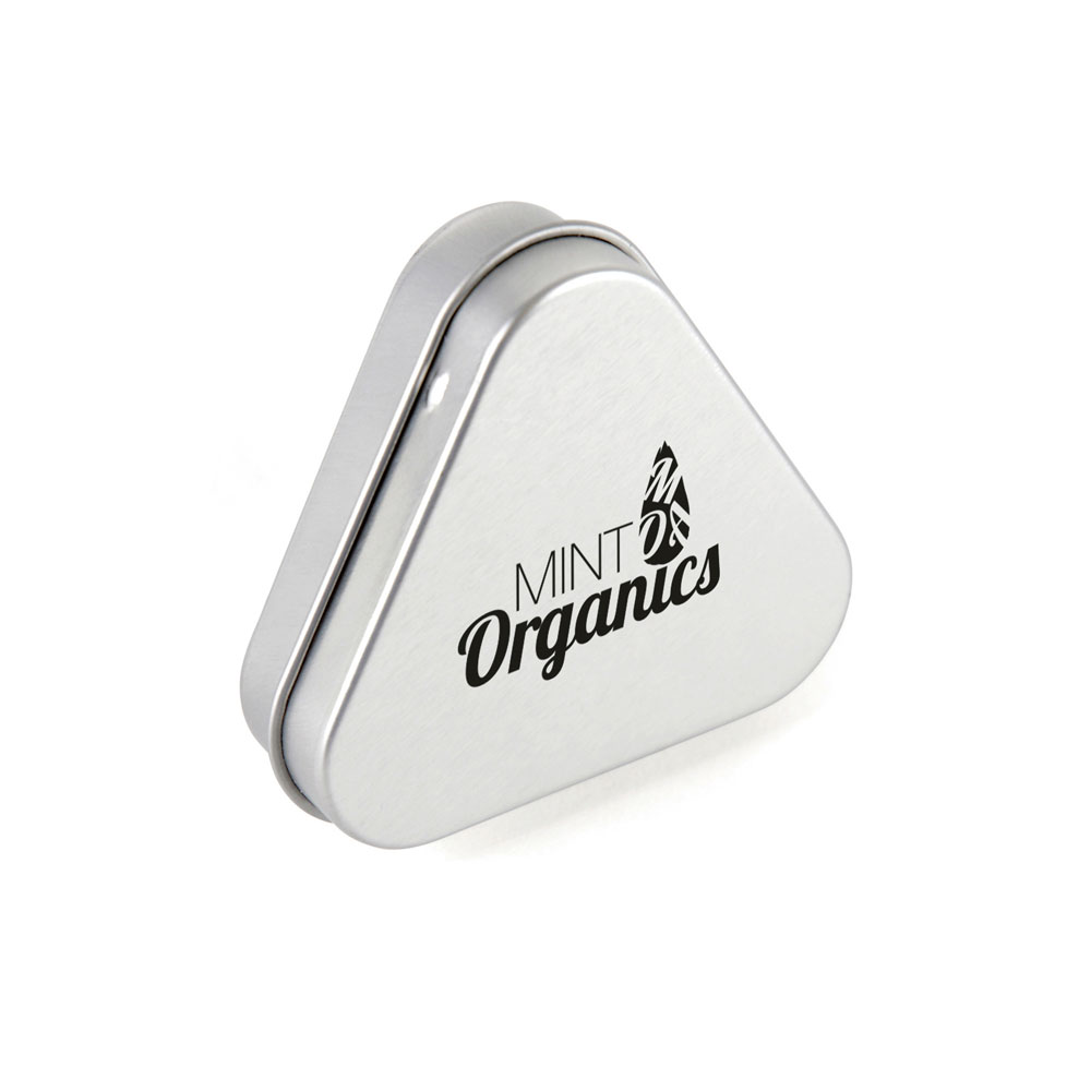 XU0002SV 'Triangular Mint Tin' SILVER metal TRIANGULAR mint tin. Approx 55 mints. 4007